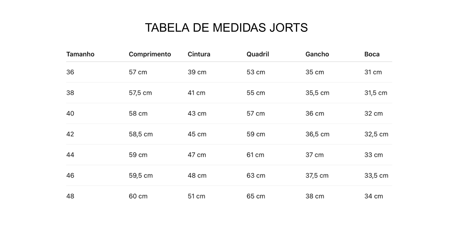 - Consulte a tabela de medidas nas fotos do produto ou na aba “Guia de medidas”